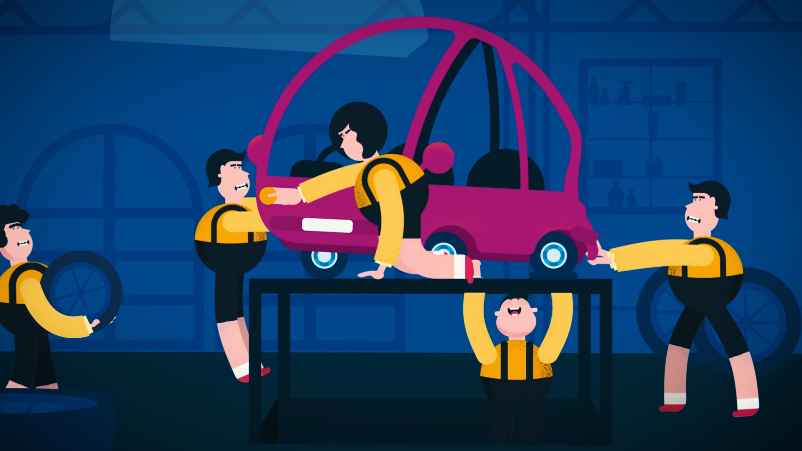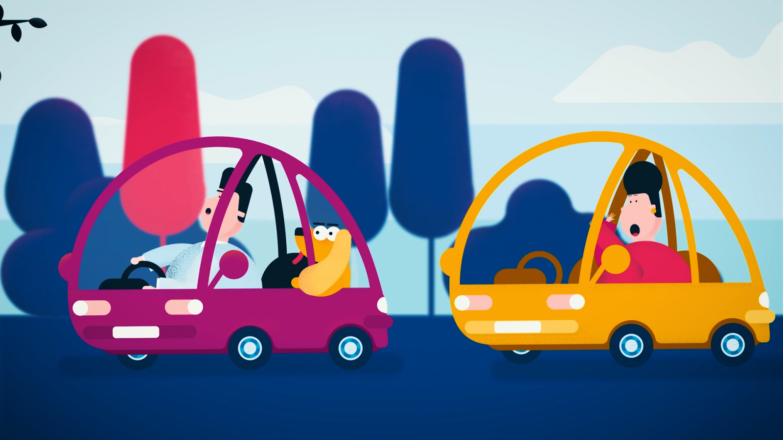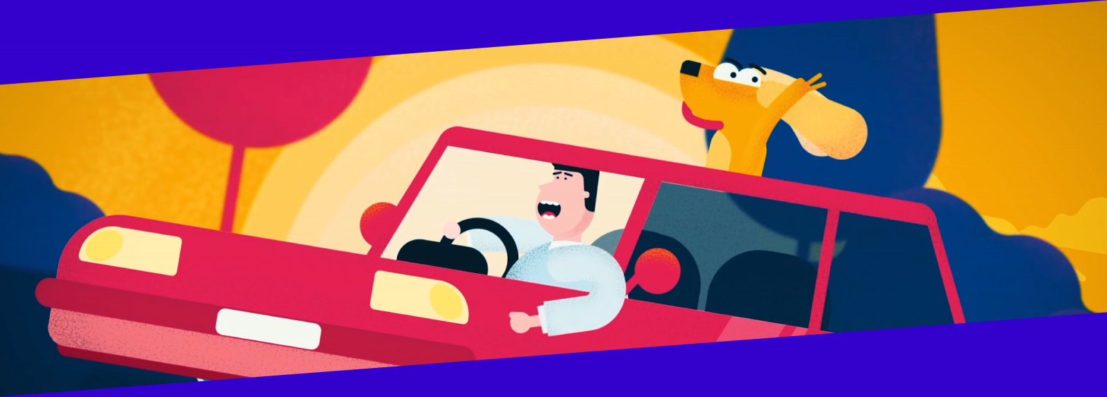 Strong colors and funny movement create a happy look & feel.